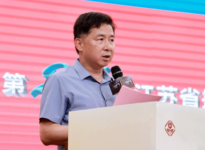 淮安市文联党组书记、主席,淮安市文化建设研究会会长王维国在第25届江苏省摄影艺术展览精品巡展(淮安站)开幕式上讲话。方向东/摄